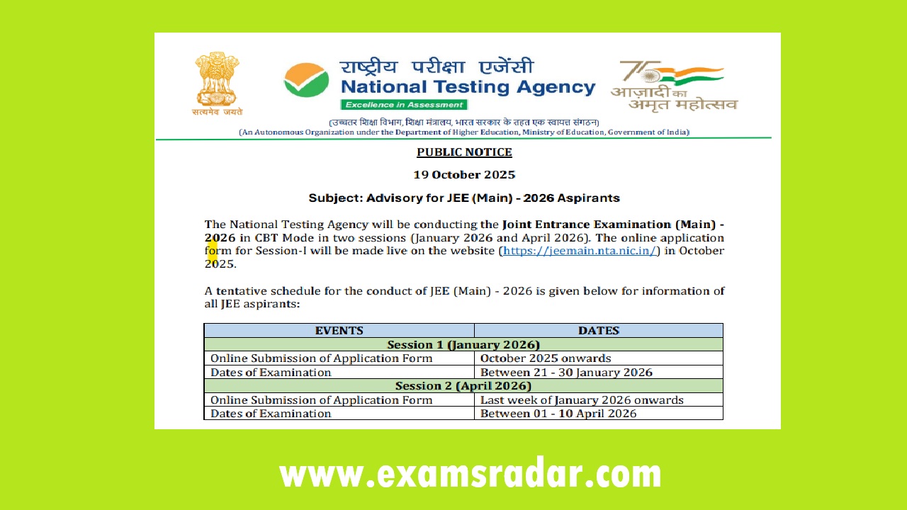 The Joint Entrance Examination (JEE Main 2026) is the gateway to India’s top engineering institutions including NITs, IIITs, and GFTIs, and acts as the qualifying test for JEE Advanced (IIT admission). NTA’s official calendar confirms that the exam will again be held in two sessions to offer students flexibility and improve their scores.